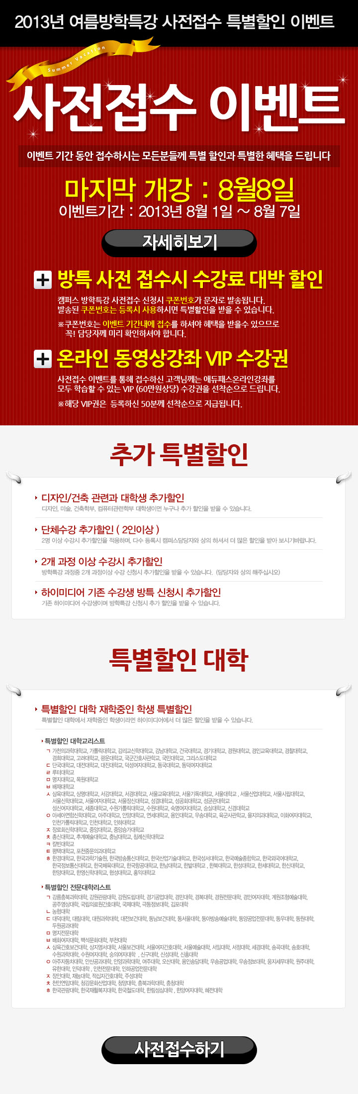 [종로]여름방학특강 사전접수 특별할인 이벤트!!